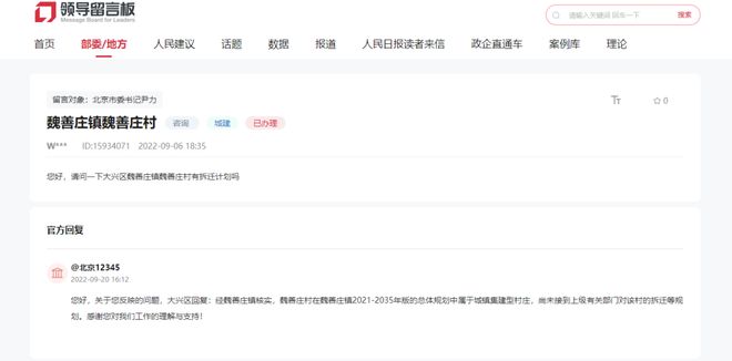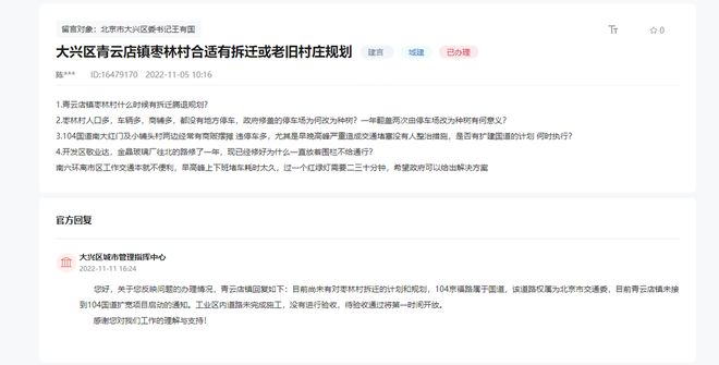 大(dà)興拆遷的(de)消息也(yě)有(yǒu)領導回複了(l∞₹e)