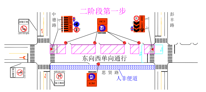 第一(yī)步封閉思賢路(lù)(彭豐路(lù)-中德路(lù))北(běi)>≤✔半幅車(chē)道(dào)施工(gōng),施工(gōng∞β ↕)期間(jiān),機(jī)動車(chē)、非機(jī)動車(★∞¶↔chē)、行(xíng)人(rén)從(cóng)南(nán)半幅東 γ∑(dōng)向西(xī)單向通(tōng)行(xíng);第二步封閉思∑≤♣賢路(lù)(彭豐路(lù)-中德路(lù))南(nán)半幅✔§✘車(chē)道(dào)施工(gōng),施工(gōng)期 ₩≤間(jiān),機(jī)動車(chē)、非<δ☆∞機(jī)動車(chē)、行(xíng)人(rén)從(cóng)π¥₽北(běi)半幅東(dōng)向西(xī)單向通(tōng)行(xíng)。§∑↑非機(jī)動車(chē)、行(xíng)人(r©™én)從(cóng)道(dào)路(lù)南(nán)側人(rén)非便道(d♦ ¥∞ào)西(xī)向東(dōng)單向通(tōng)行(xíng)。