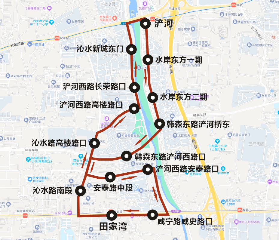 增加站(zhàn)點5個(gè):安泰路(lù)中段、浐河(hé)西(xī)路(lù)β∏₩安泰路(lù)口、鹹甯路(lù)鹹史路(lù)口、田$✘家(jiā)灣、沁水(shuǐ)路(lù)南(nán)λ£段。