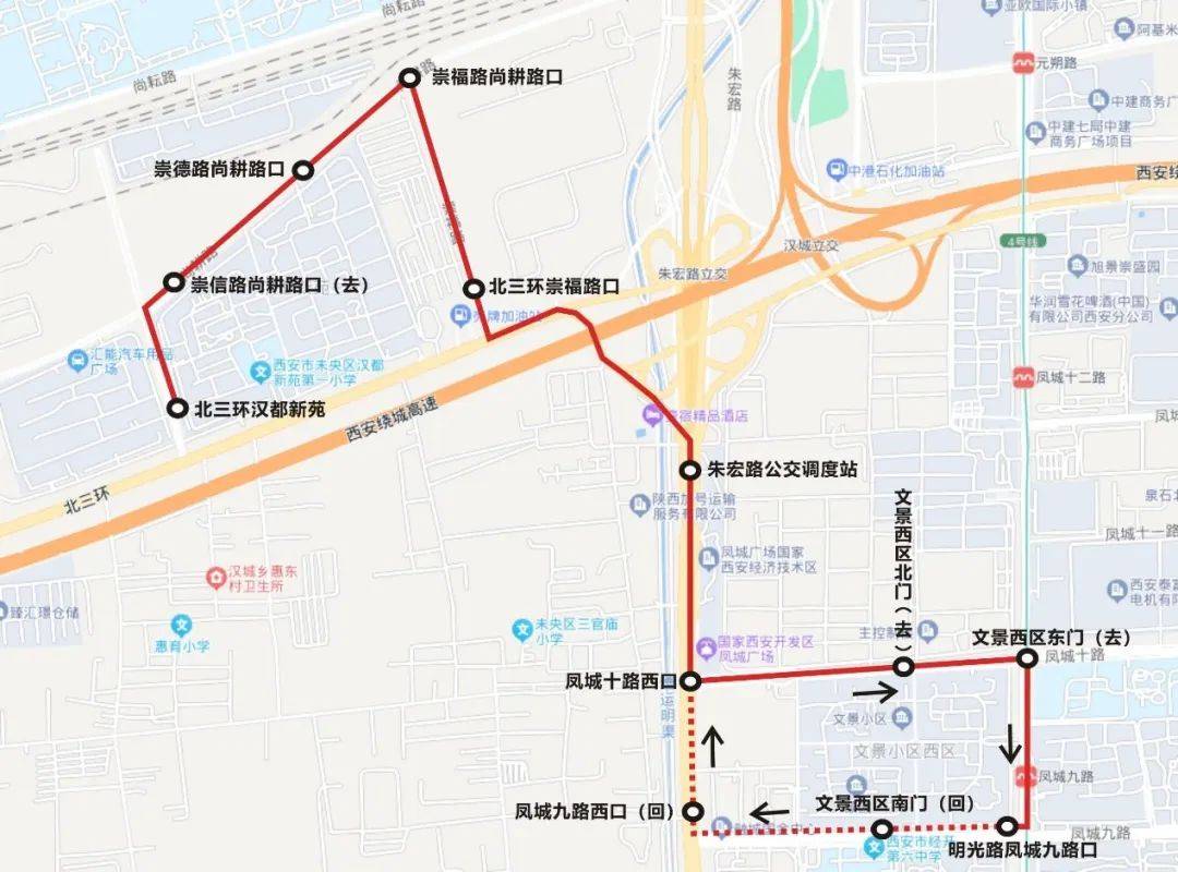 線路(lù)設置站(zhàn)點12個(gè):北(běi)三環漢都(dōu)新苑、崇信路(lù)>尚耕路(lù)口(去(qù))、崇德路(lù§π)尚耕路(lù)口、崇福路(lù)尚耕路(lù)"™$口、北(běi)三環崇福路(lù)口、朱宏路(lσ§ù)公交調度站(zhàn)、鳳城(chéng)十¶γ路(lù)西(xī)口、文(wén)景西(xī)區(qū)北α₹(běi)門(mén)(去(qù))、文(wén)景西(x₩§ ≥ī)區(qū)東(dōng)門(mén)(去(qù))、鳳城(ché≈↓✔ng)九路(lù)西(xī)口(回)、文 →¶♣(wén)景西(xī)區(qū)南(nán)門(mén ★₩)(回)、明(míng)光(guāng)路✔λ(lù)鳳城(chéng)九路(lù)口。