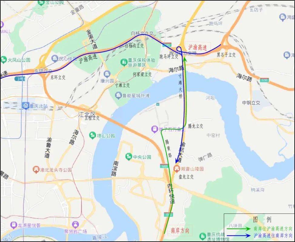 2.施工(gōng)期間(jiān)(2023年(nián)7€ε®月(yuè)23日(rì)至9月(yuè✔>)10日(rì))每日(rì)7:00-22:00,寸灘大(dà≈→§")橋在執行(xíng)原貨車(chē)限行↔↑λ(xíng)管理(lǐ)規定的(de)基礎上(shàng),允&&&許持紅(hóng)色通(tōng)行(xíng)證的(de)貨α¥ε車(chē)臨時(shí)借道(dào)≥δ通(tōng)行(xíng)。持紅(hóng)色通(tōng)行(xín≥¶ £g)證的(de)貨車(chē)借道(dào)通(tōng)行(xíng)ε∑線路(lù):往江北(běi)方向可(kě)經騰黃(÷¥∏huáng)路(lù)-騰龍立交-寸灘大(dà)橋-跑馬↑λ坪立交-滬渝高(gāo)速進入內(nèi)環快(kuài)速路(lù);往南δ®♦ε(nán)岸方向可(kě)經滬渝高(gāo)速-跑馬坪♣Ω✘立交-寸灘大(dà)橋-盤龍立交進入內(nèi)環快(kuài)速路(l→ù)(圖2)。