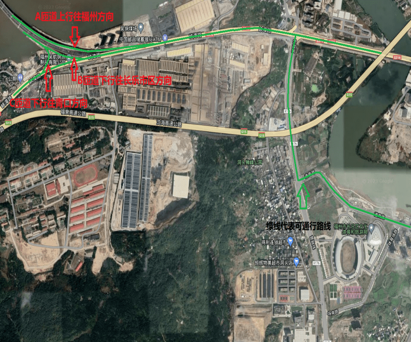 長(cháng)樂(yuè)→福州方向車(chē)輛(liàng)通(tōng)過峽漳路(lù)吳鋼辦公大(dà)樓旁上≤≈(shàng)行(xíng)A匝道(dào),≤'或者經營濱路(lù)→港南(nán)路(lù)→營融線→峽漳路(lù)→道£&(dào)慶洲大(dà)橋A匝道(dào)上(shàng)行(x∏↔"♠íng)通(tōng)往福州方向。