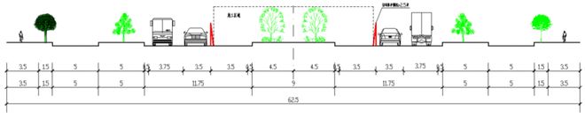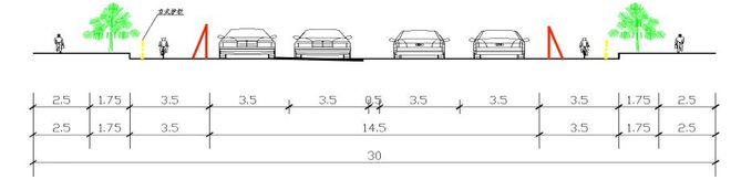 兩側各占用(yòng)半個(gè)車(chē)道(dào),用♥γ∞↔(yòng)H800護欄分(fēn)隔出人≠δ(rén)行(xíng)道(dào)及非機(jī)動車(chē)道(dào ∞ )。保留雙向4車(chē)道(dào),車(chē)道(dào)寬3.5•π₩ m。