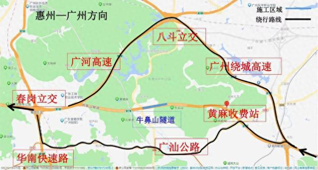 東(dōng)行(xíng)(廣州—惠州)方向車(chē)輛(£∑∑ liàng)請(qǐng)繞行(xíng):