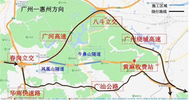 西(xī)行(xíng)(惠州—廣州)方向繞行(xíng)指引