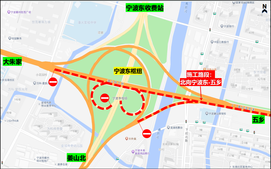 施工(gōng)期間(jiān),甬台溫高(gāo)速北(→↑ běi)侖方向五鄉(xiāng)樞紐主線€£∏↓分(fēn)流,G1504甯波繞城(chéng)高(gāo)δ$¶>速五鄉(xiāng)樞紐雙向轉北(běi)侖方向匝道(dào)₽'關閉,鄞州東(dōng)收費(fèi)站(zhàn)北(běi)侖方向進£φ口關閉,甯波方向車(chē)輛(liàng)正常通(tōng)行(xín★↑✘g)。