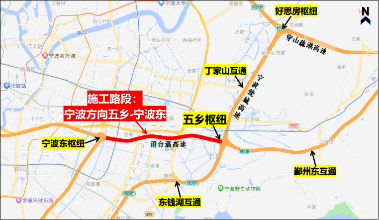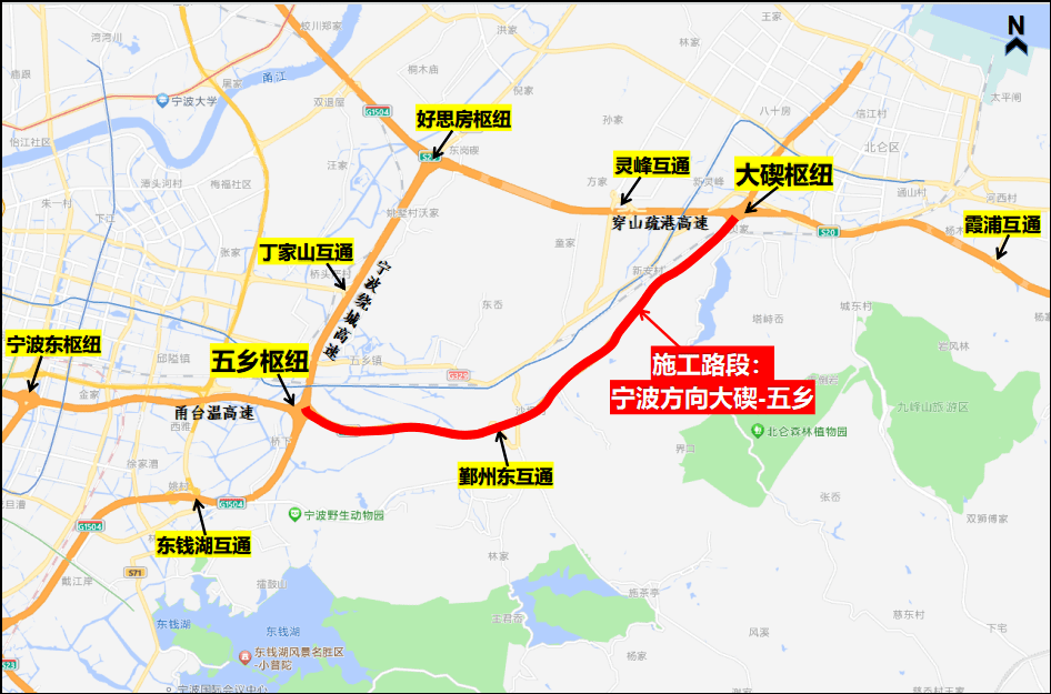 甬台溫高(gāo)速甯波段一(yī)期甯波方向大(dà)碶樞紐-五鄉(xiāng)樞紐 '路(lù)段