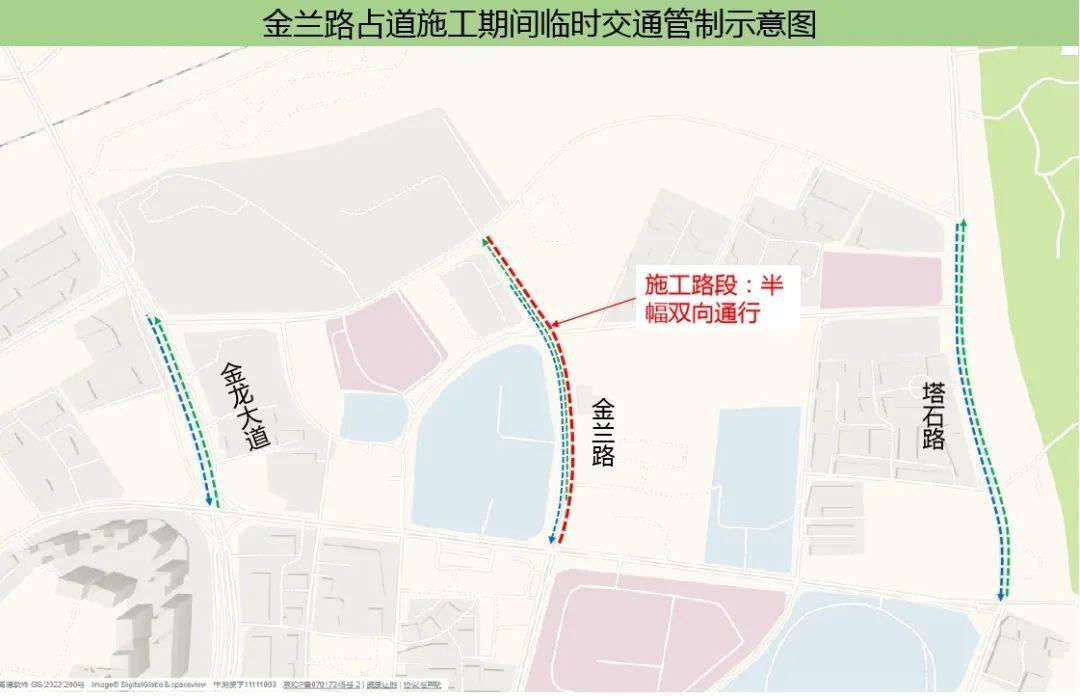因施工(gōng)路(lù)段半幅雙向通(tōng)行(xíng),易§→造成交通(tōng)擁堵,建議(yì)行(xíng)經施工(gōn↔£γ¶g)路(lù)段的(de)車(chē)輛(liàng)繞行(xíng)塔≥↕石路(lù)、金(jīn)龍大(dà)道(dào)等平行(xíng)道(≥¥dào)路(lù)。