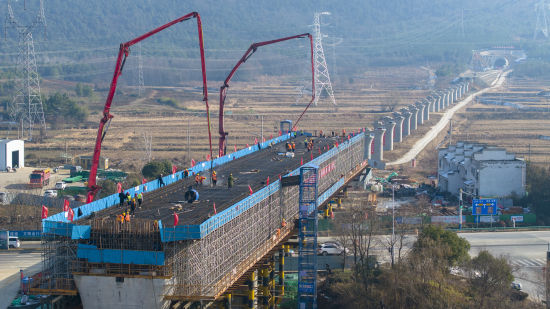 12月(yuè)25日(rì),由中鐵(tiě)四局承建的(deβ∞π)巢(湖(hú))馬(鞍山(shān))城(chéng)際鐵(t☆×₩iě)路(lù)跨S226省道(dào)特大(•∞λdà)橋現(xiàn)澆連續梁順利澆築,标志(zhì)著(zhe)巢馬鐵(tiě)路(lùφ≈☆)支線工(gōng)程建設又(yòu)向前邁了(le)一(yī)×™✘步。